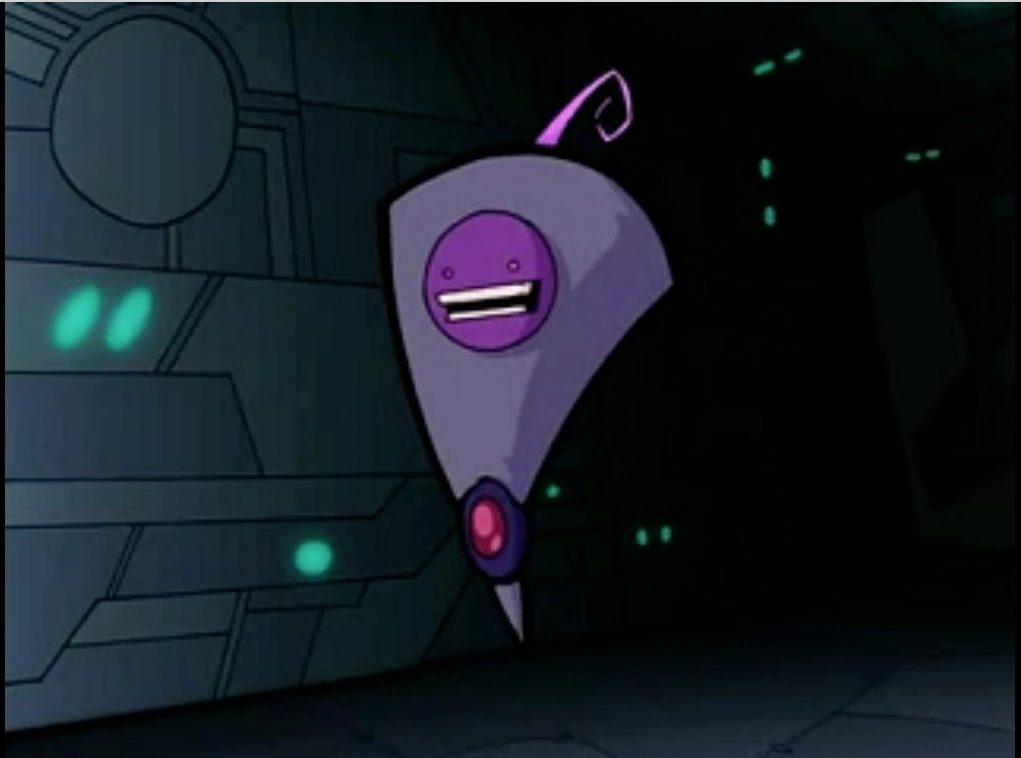 A few big-headed cloaked aliens sit at consoles. One of them activates the shrinky self-destruct. They seem to have hoods, but it's unclear. They have points on the end, making them look similar to Dib.